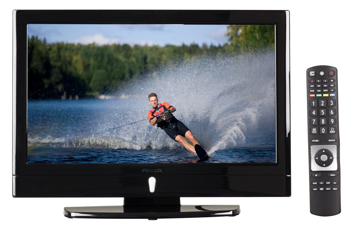 19":n lcd-tv, jossa kiinteä dvd-/USB-/digitaalivastaanotin Finlux 19FLXR743HUV