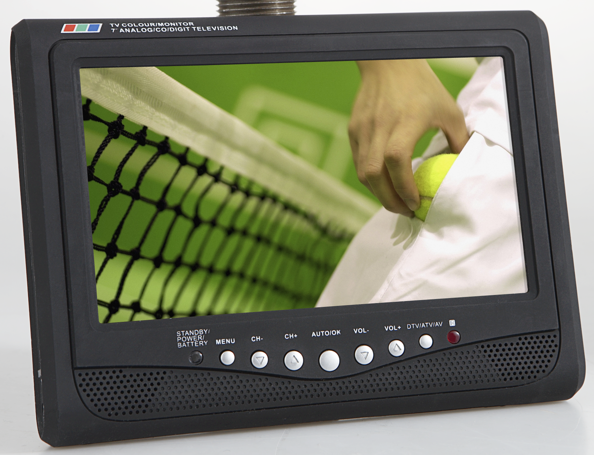 7":n LCD-televisio. Analoginen ja digitaalinen tv-vastaanotin