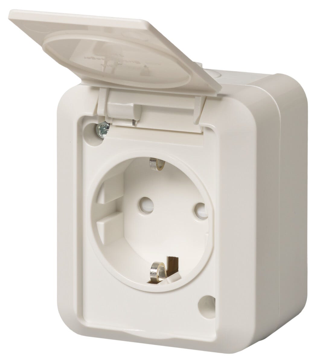 • 1-vägsuttag för montage i fuktiga och torra utrymmen – inne och ute.