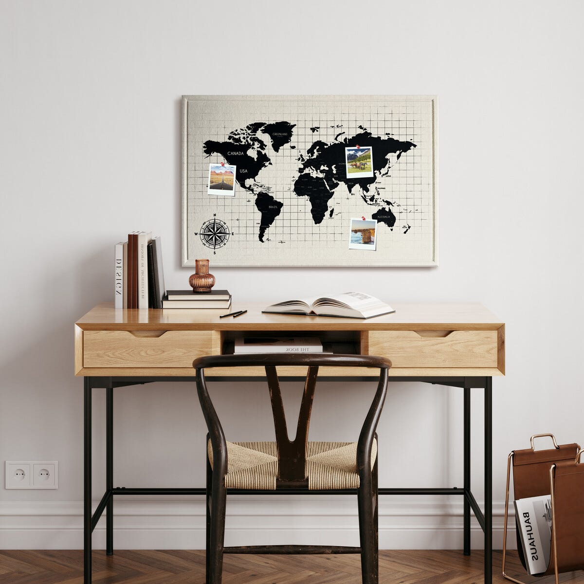 Ääntä vaimentava ilmoitustaulu, maailmankartta, 60 x 90 cm