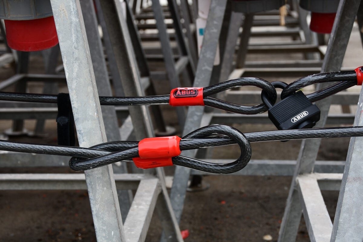 • Osta lukkovaijerin lisäksi sopiva riippulukko, jossa on koodi- tai avainlukitus (myydään erikseen).