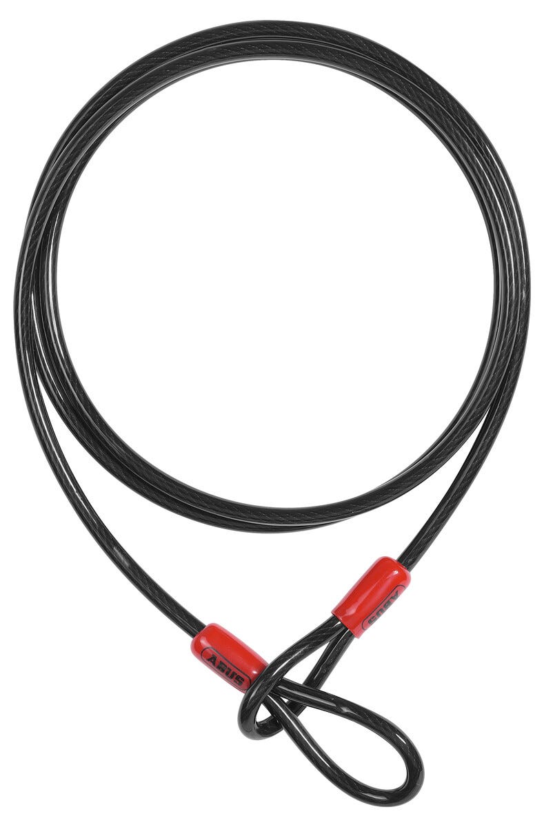 • Abus Cobra 10/200 – luja ja joustava teräsvaijeri, jossa on silmukat.