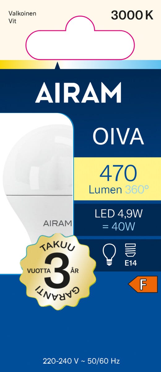 Airam Oiva LED-lampa E14 4,9 W, varmvit