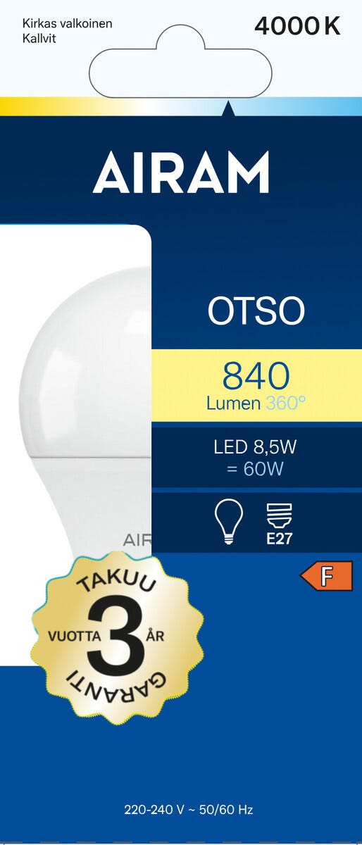 Airam Otso LED-lampa E27 8,5 W, neutralvit