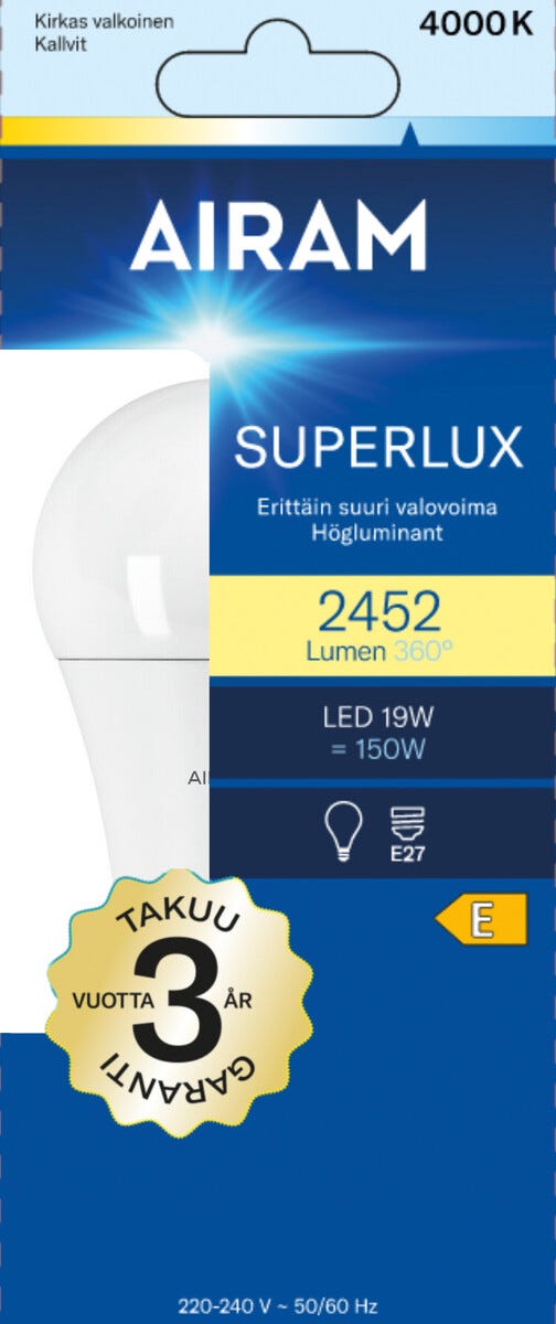 Airam Superlux LED-lamppu E27, 19 W, neutraalin valkoinen