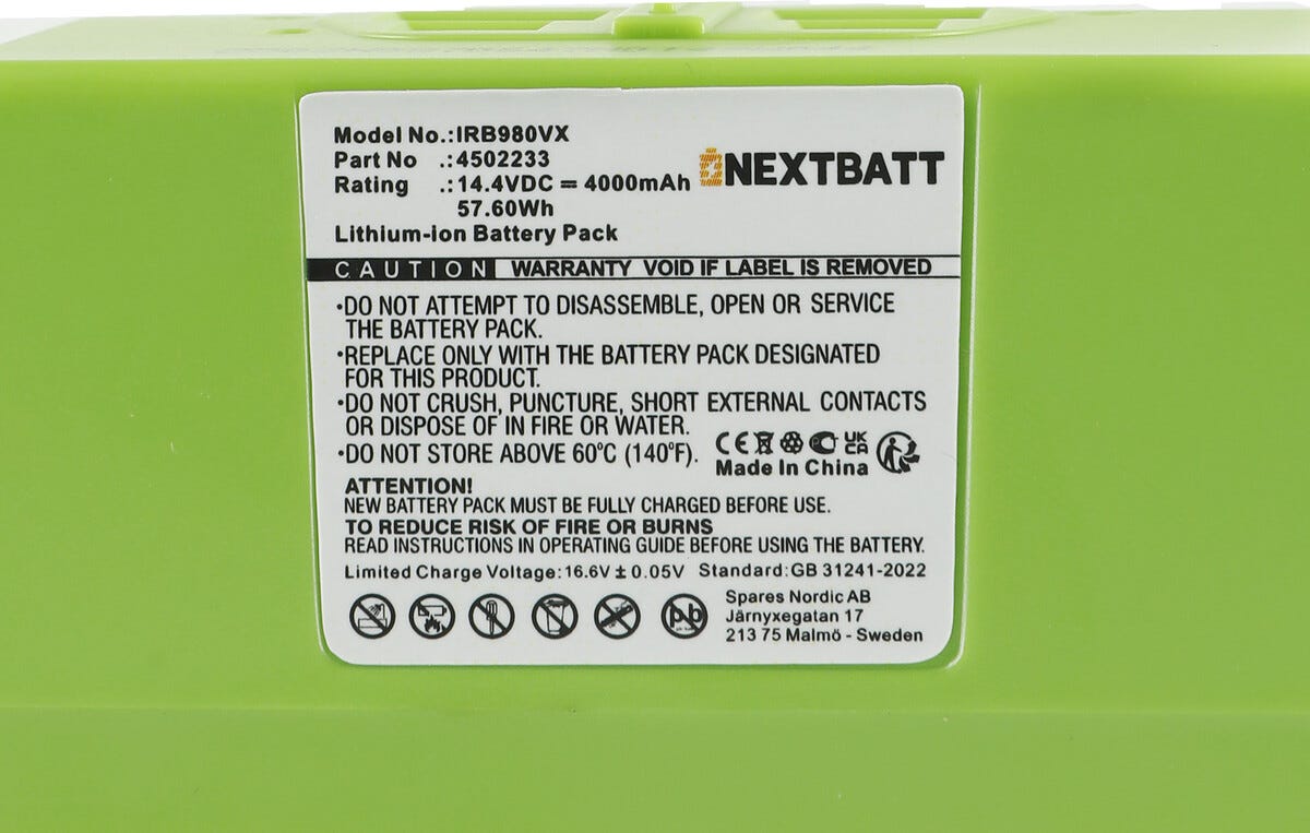 Akku 14,4 V/4000 mAh iRobot Roomba 600/800/900-sarja, Li-Ion