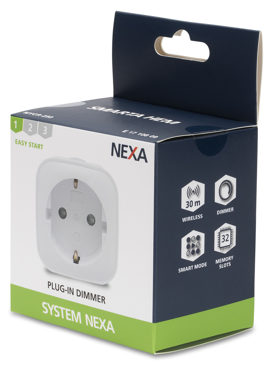 • Nexa MYCR-250 – smart-plug-himmennin, jossa on/off/himmennys-painike.