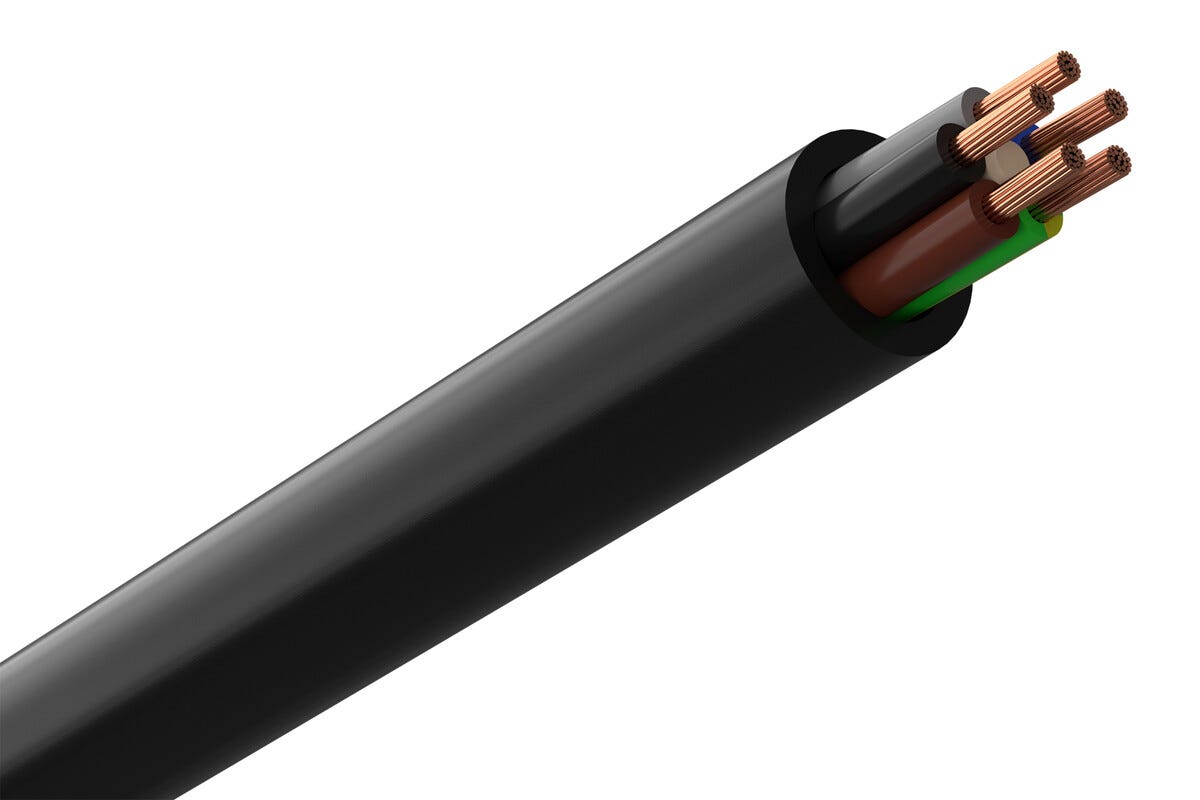• PVC-päällysteinen kaapeli, jossa 5 kuparijohdinta – vihreä/keltainen, sininen, ruskea, musta ja harmaa.