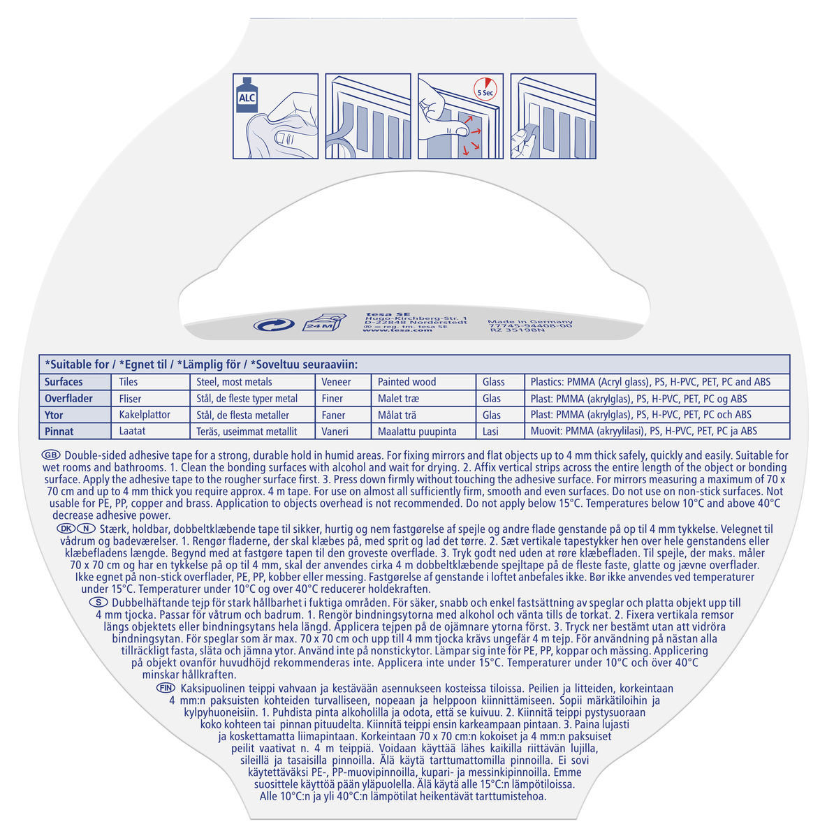• Vahva kaksipuolinen teippi pysyvään asennukseen.