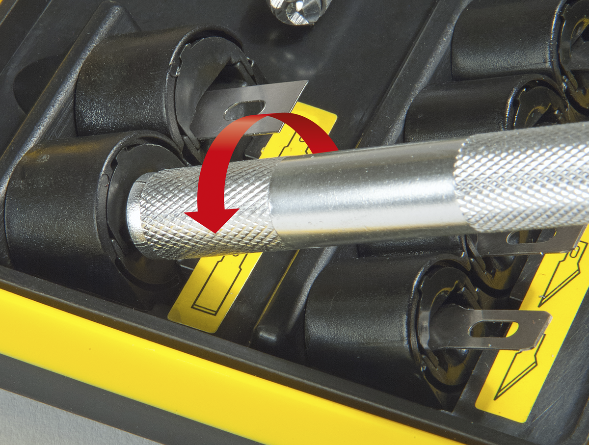 • No touch -vetokahva - pyöritä, jotta terä irtoaa kotelosta.