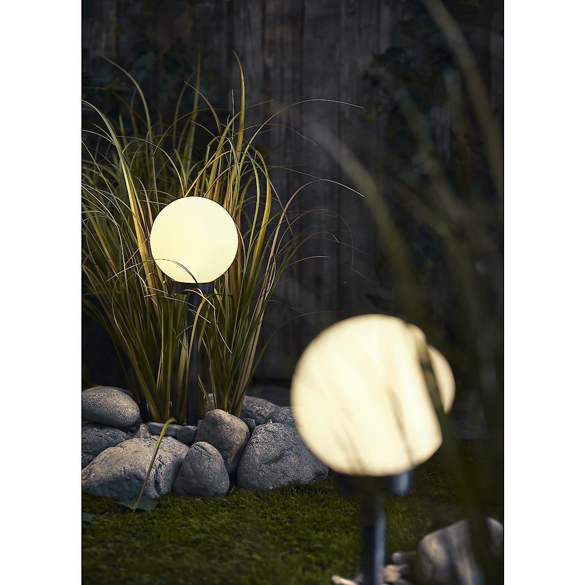 • Solcellslampa med klot och markspjut – stoppa ner spjutet i en blomkruka eller rabatt.