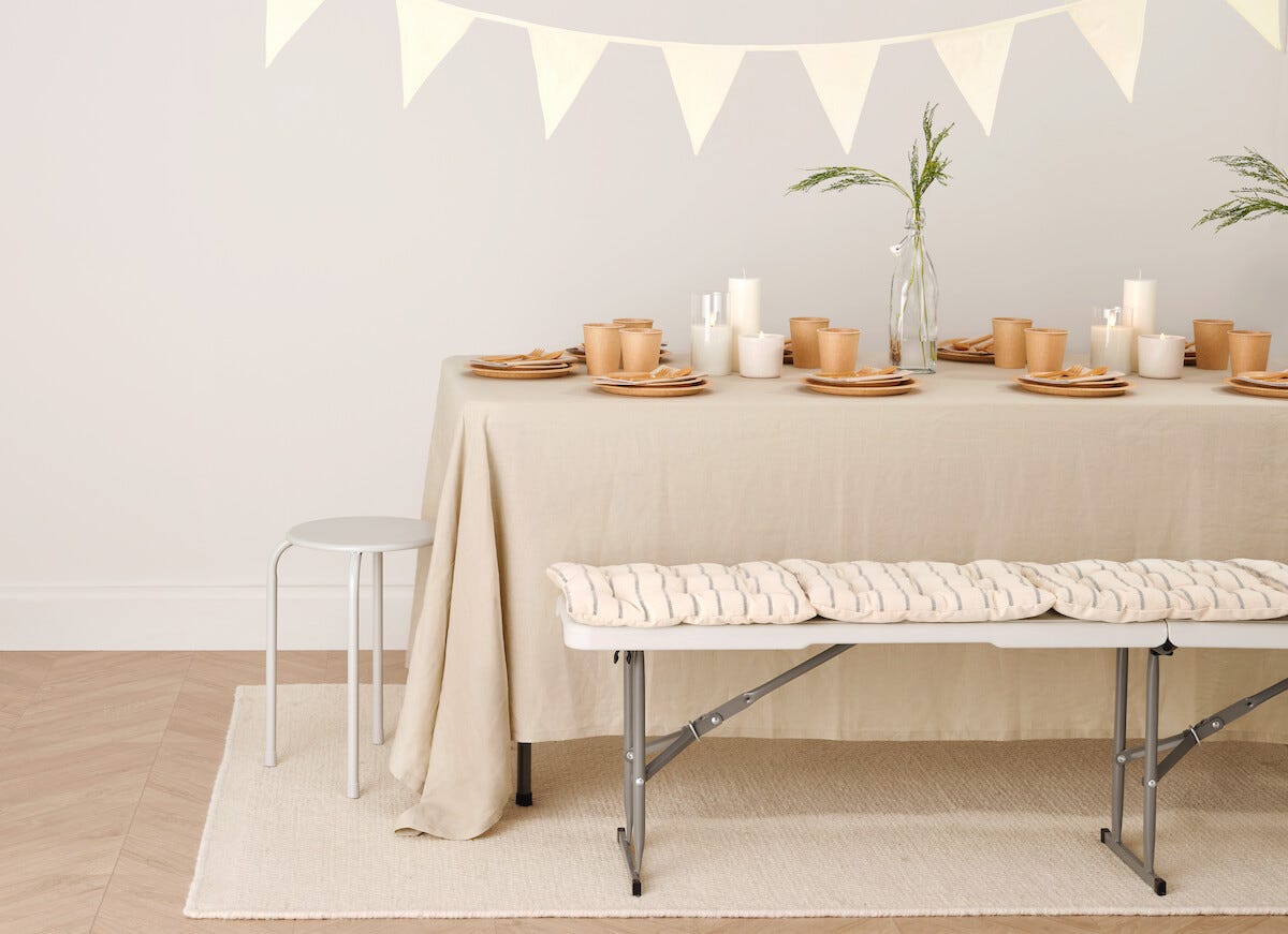 • Stabil hopfällbar bänk för utomhus (bord säljs separat).