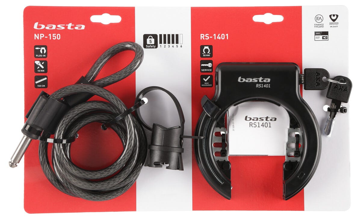 Basta Polkupyörän lukko, vakuutusyhtiön hyväksymä, runkolukko ja vaijerilukko, RB1401 / PN-150