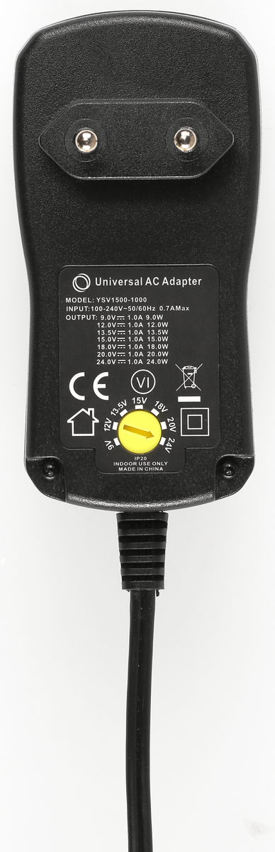 • 7 valittavaa lähtöjännitettä: 3 V, 4,5 V, 5 V, 6 V, 7,5 V, 9 V ja 12 V.