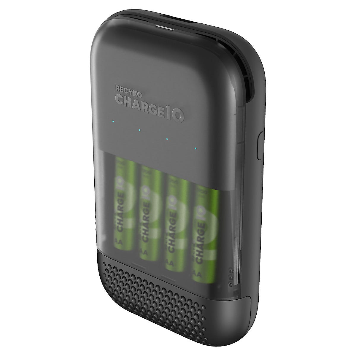 • Recyko Charge 10 -akkulaturi ja 4 akkua sekä pikalataus tai ekotila.