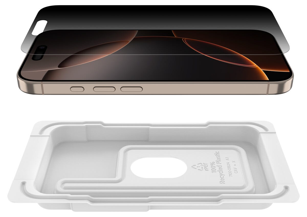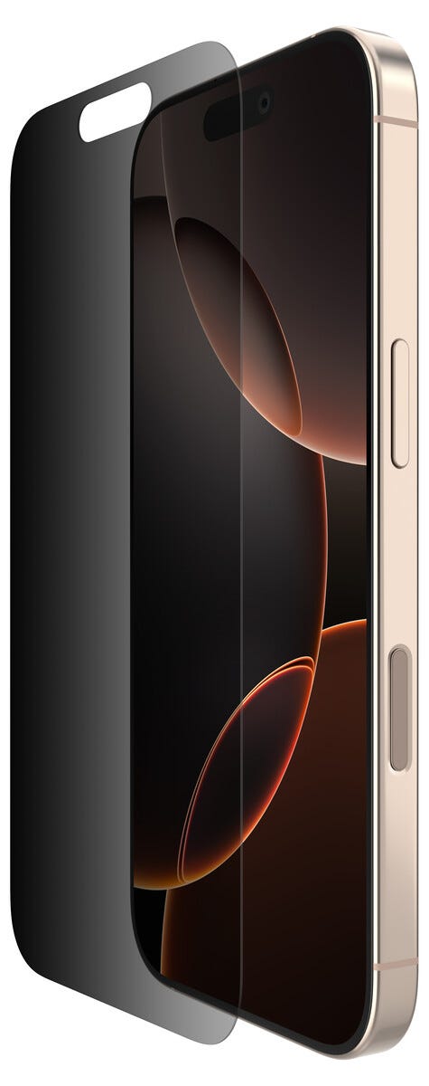 • Belkin ScreenForce InvisiGlass Privacy skärmskydd för iPhone 16 Pro och iPhone 17.