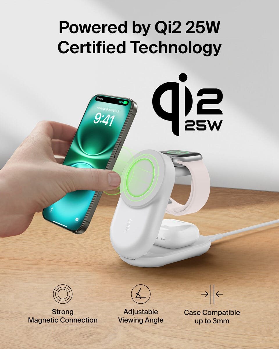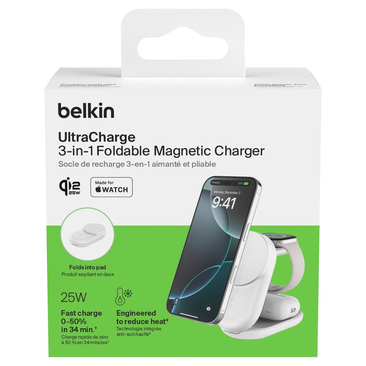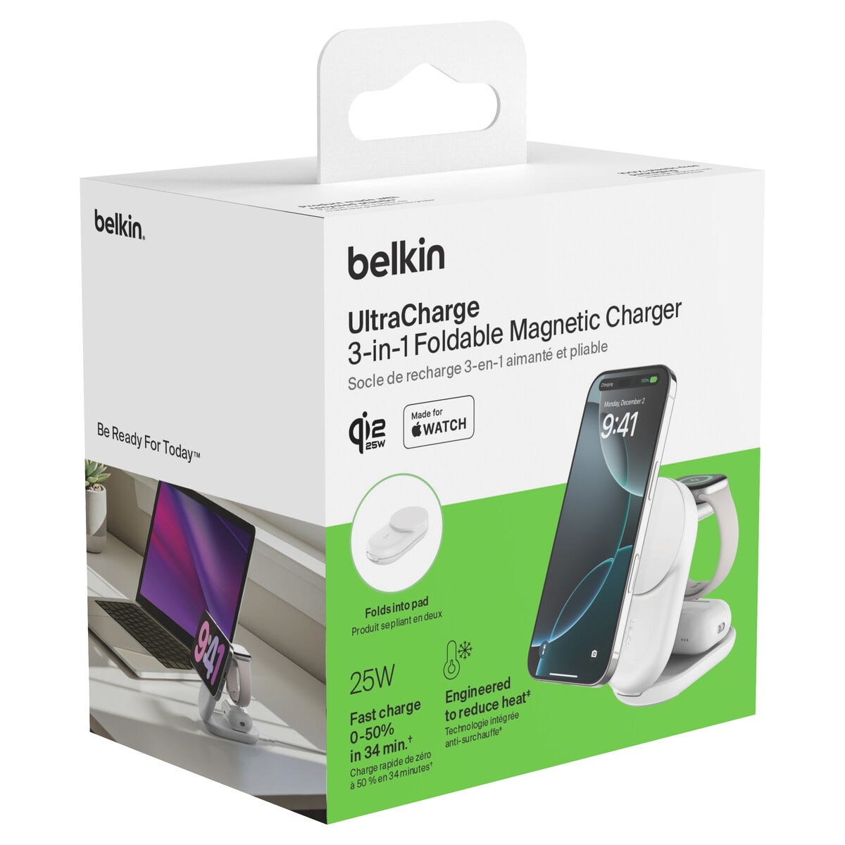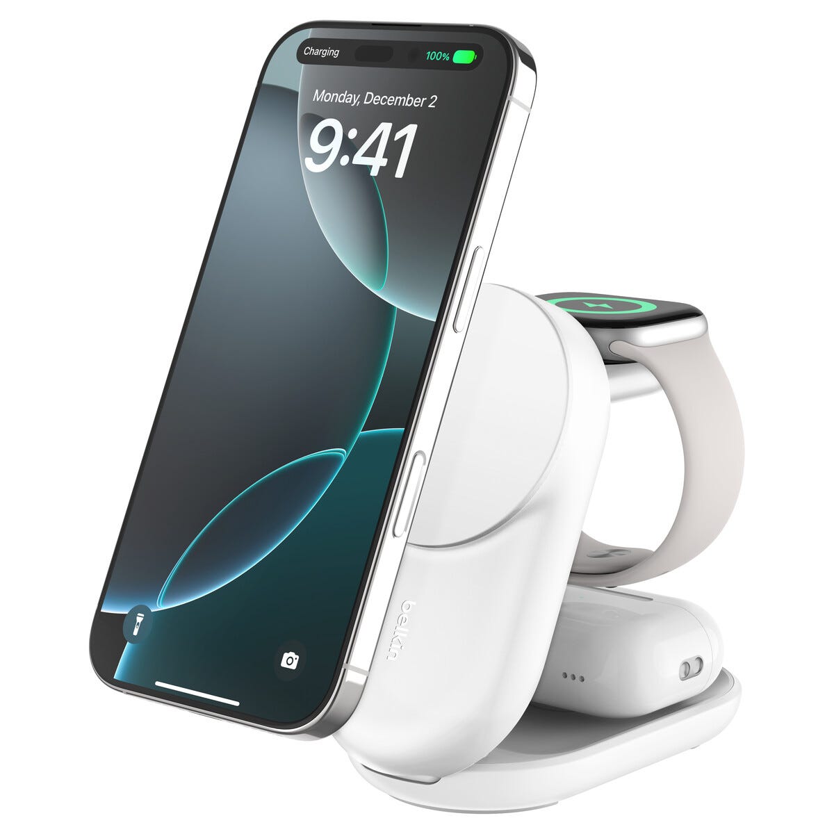 Belkin UltraCharge 3-in-1 Qi2-laturi kokoontaitettava, 25 W