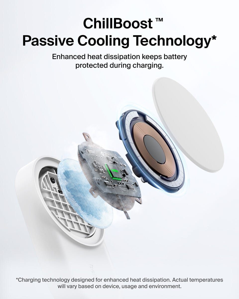 • Magneettinen laturi (Qi2), jonka passiivinen ChillBoost-jäähdytys suojaa akkua.