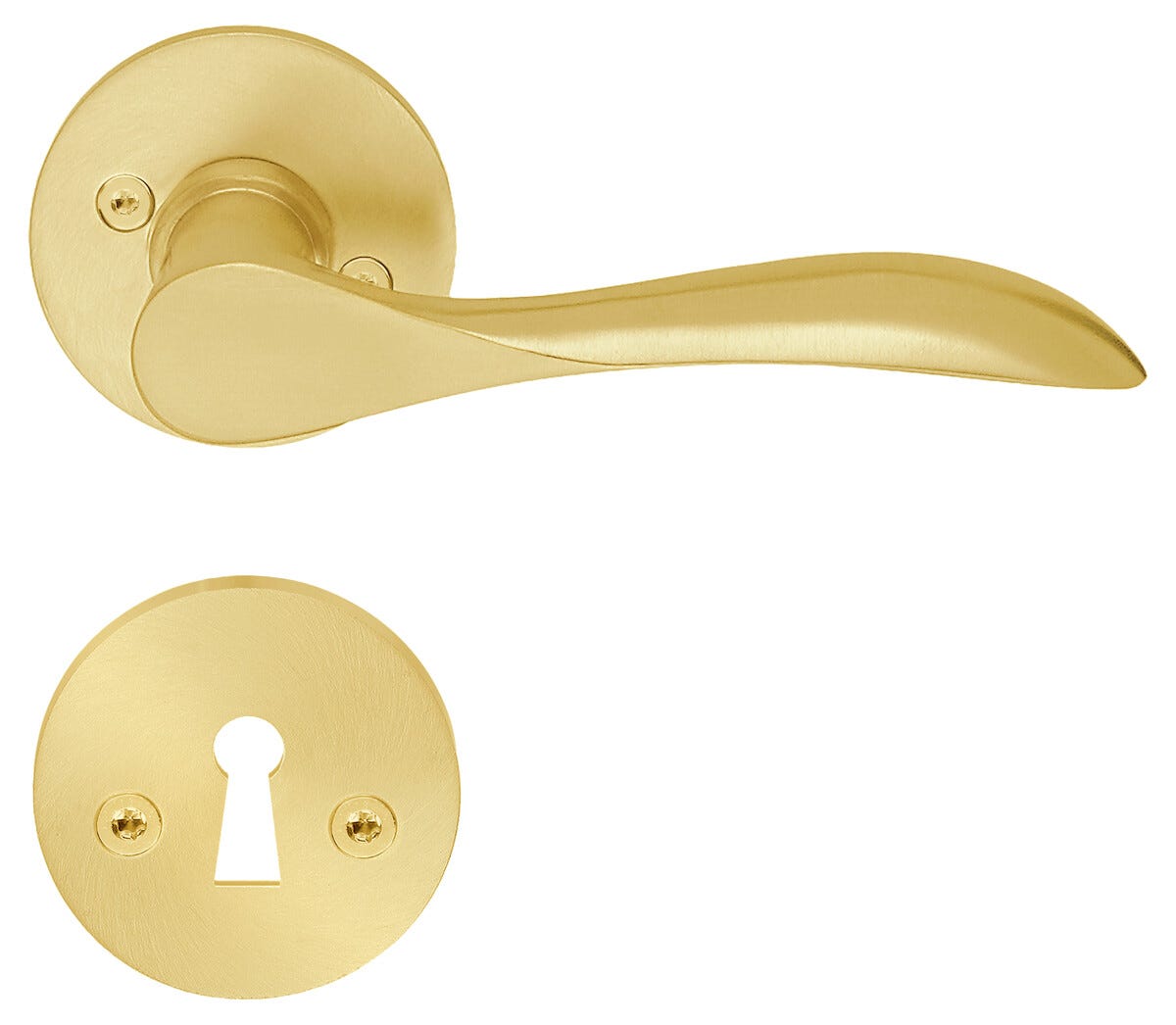 • Perinteinen, ajaton sisäoven kahva, jossa on harjattu messinkipinta.