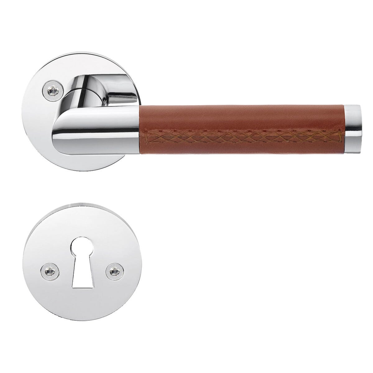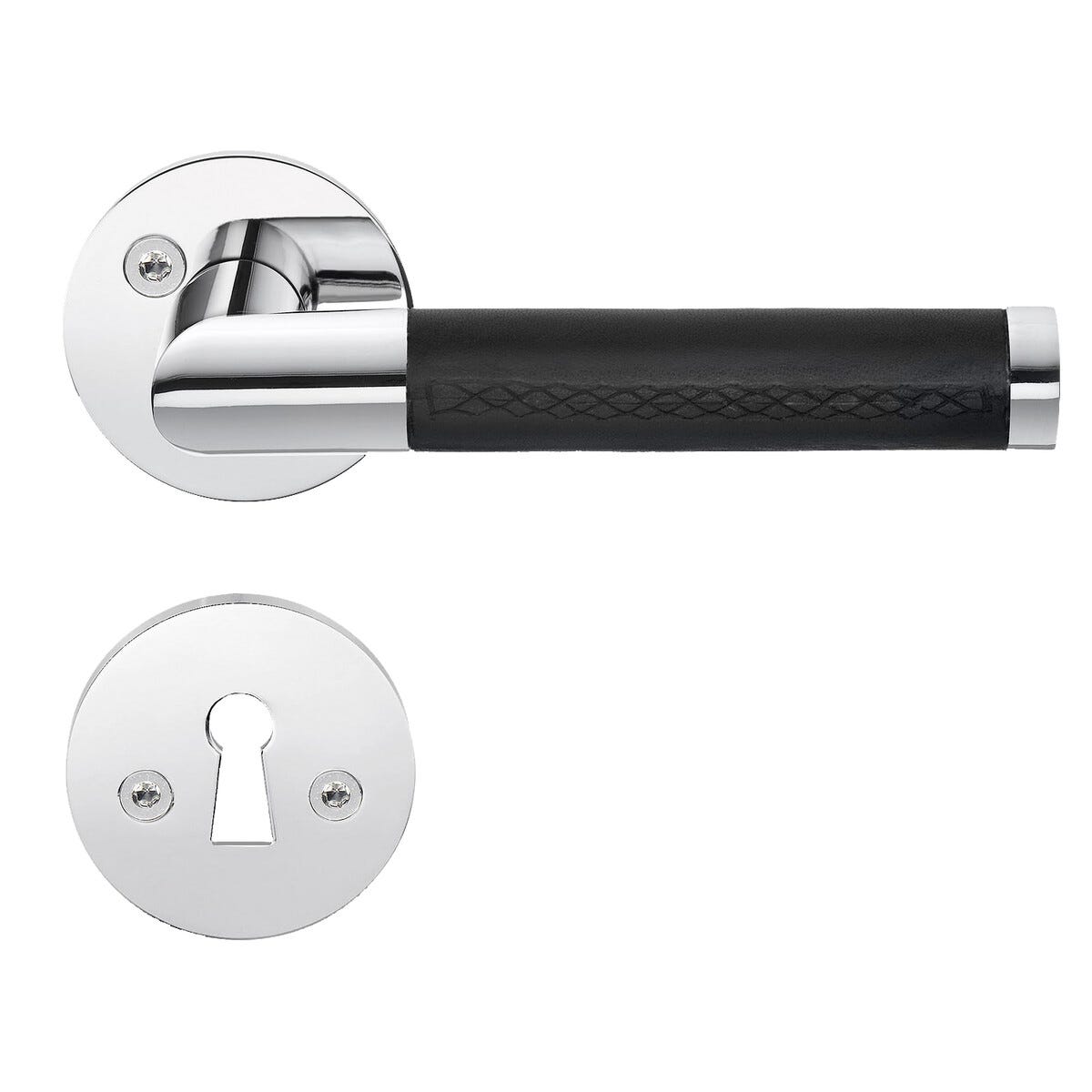 • Tyylikäs kahva, jossa on kiillotettu kromipinta ja mukava nahkainen otepinta.