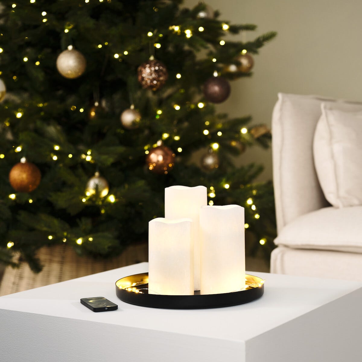 • Kolme tyylikästä kynttilää – paloturvalliset ja aidonnäköiset.