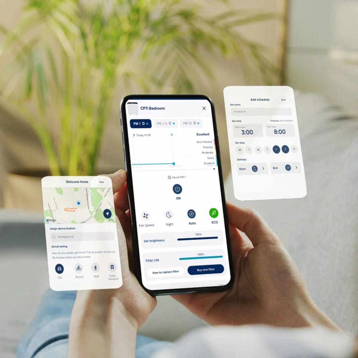 • Ilmanpuhdistin, jossa HINS-valo – sterilisoi turvallisesti ilman otsonia tai ultraviolettivaloa.