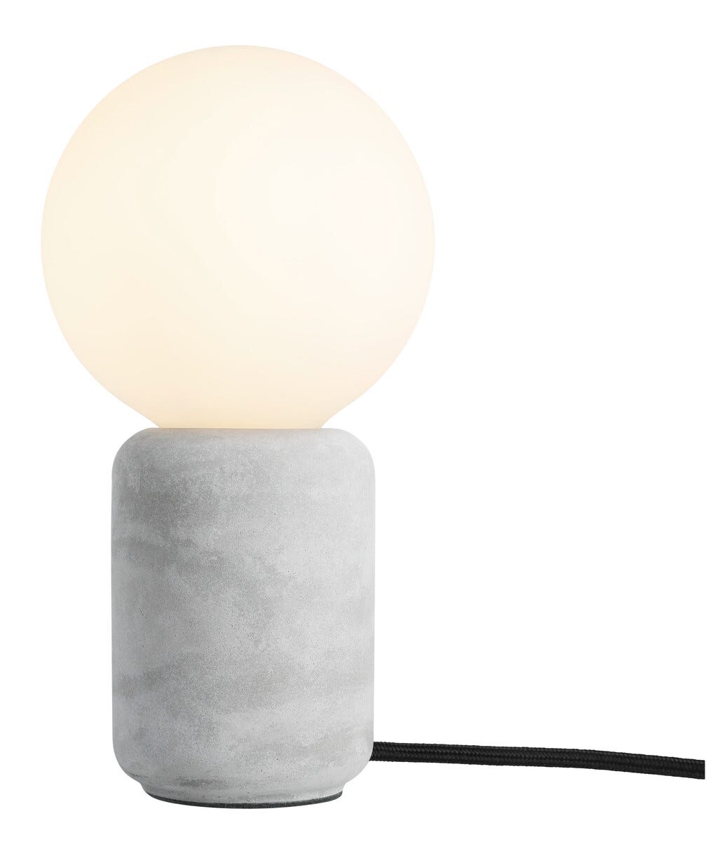 • Ajaton pöytälamppu, jossa pyöristetyt muodot. 1,5 metrin kangaspäällysteinen johto.