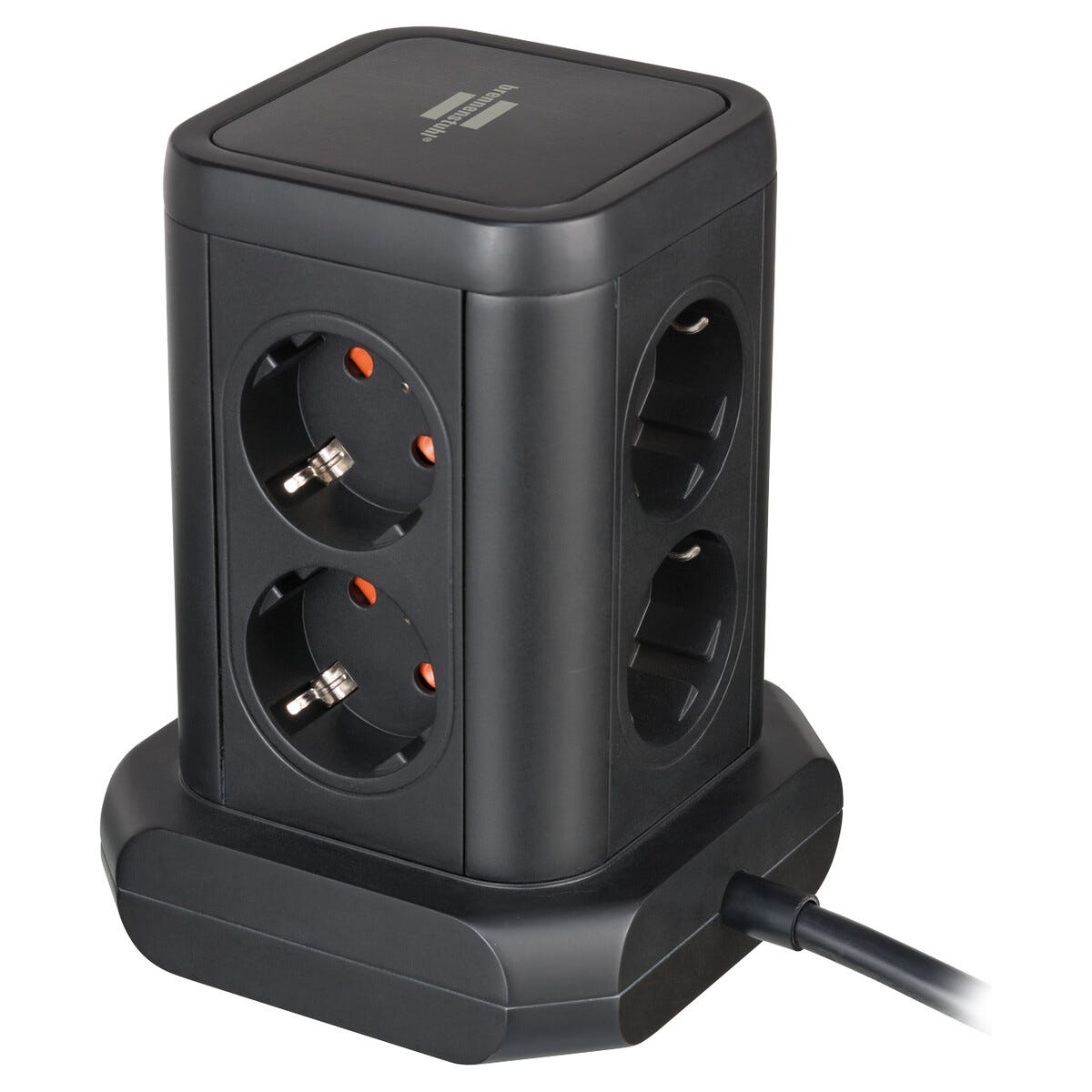 Brennenstuhl Socket Tower 8-osainen jatkojohto, 3 USB, musta