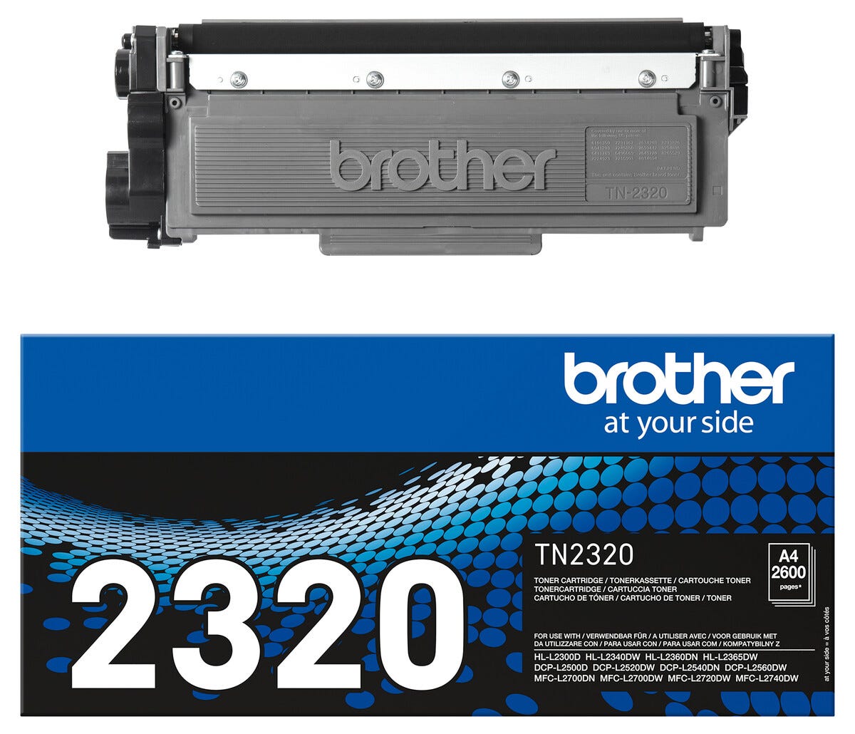 • Yhteensopiva Brother-tulostimien kanssa: DCP-L2500D, DCP-L2520DW, DCP-L2540DN ja DCP-L2560DW.