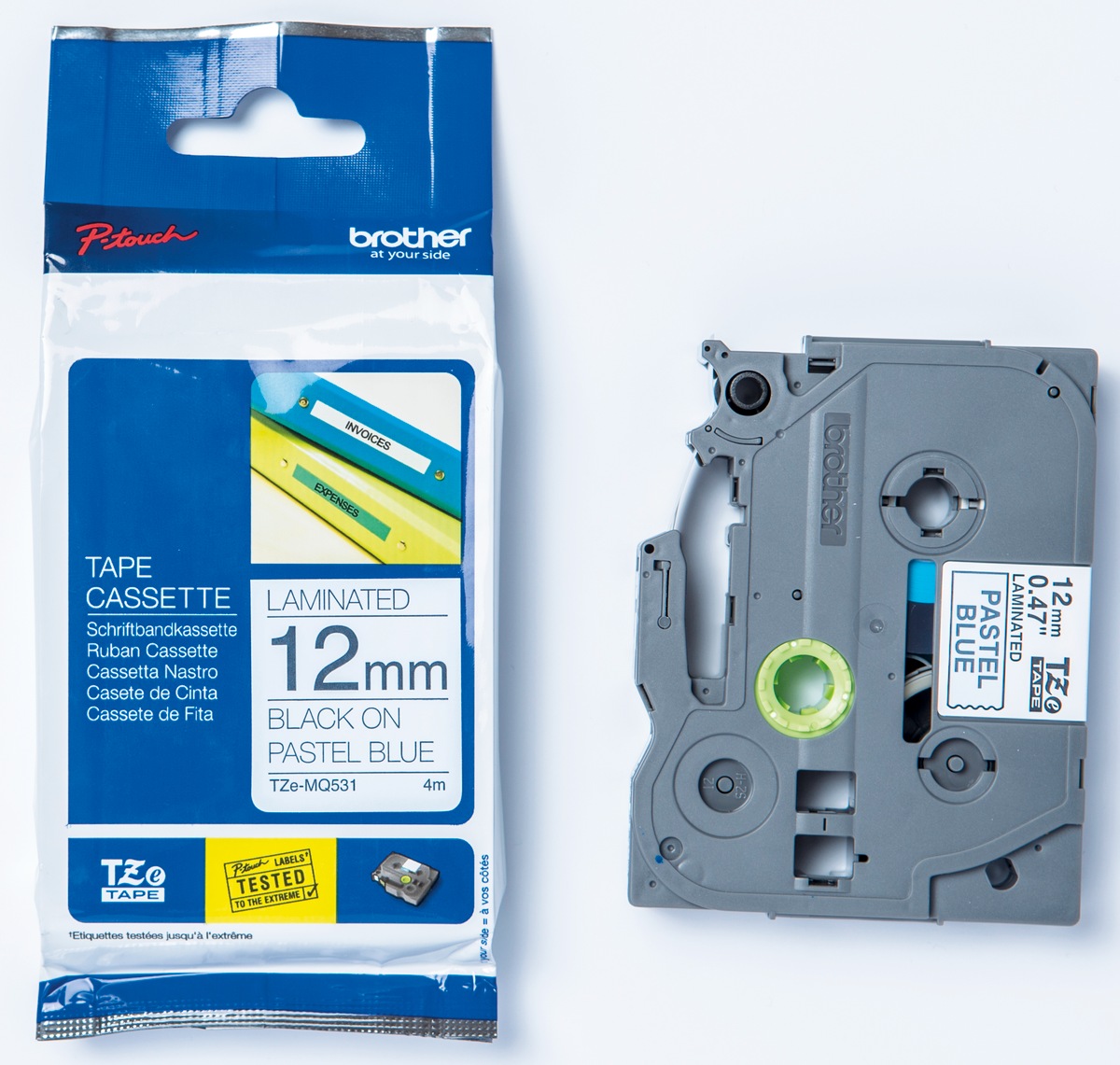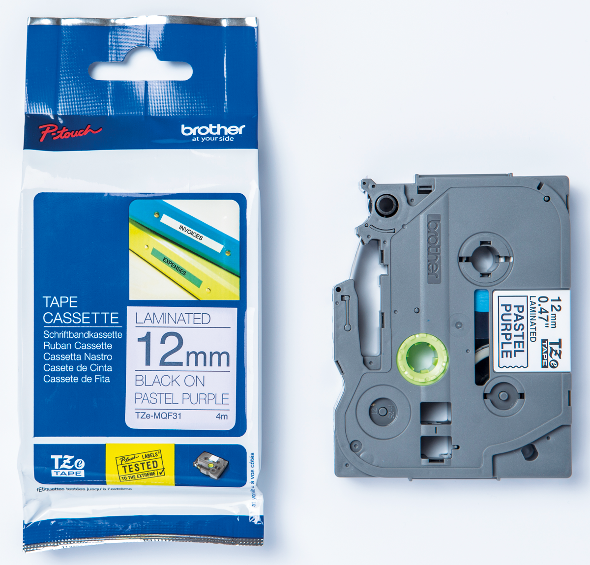 • Brotherin laminoitu säänkestävä TZe-teippi.