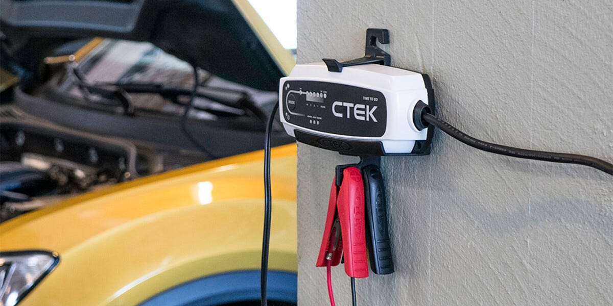 • CTEK väggfäste – kan väggmonteras eller hängas tillfälligt på krok.
