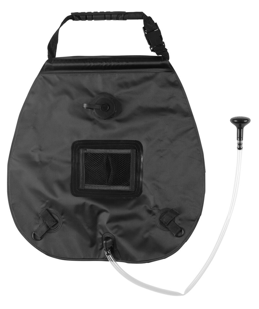 • Retkisuihku, jossa pussi, kahva, hana ja suihkupää.
