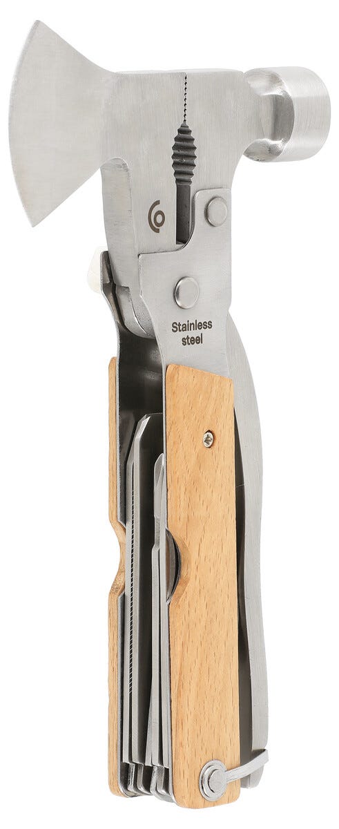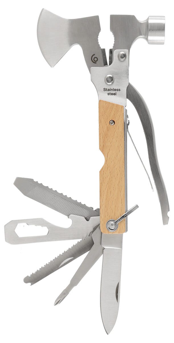 • Pidä mukanasi monitoimityökalu – vasara, kirves, veitsi ja paljon muuta, yhteensä 14 toimintoa.