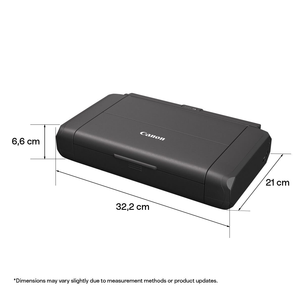 • Kannettava Canon Pixma TR150 -tulostin, jossa on sisäänrakennettu ladattava akku.