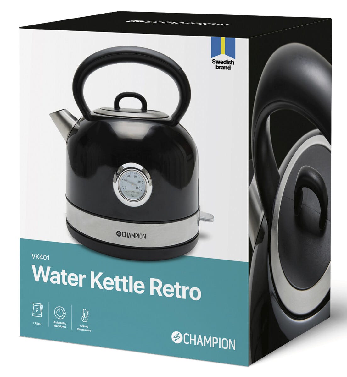 • Champion Retro VK401 -vedenkeitin – tilavuus: 0,8–1,7 litraa.