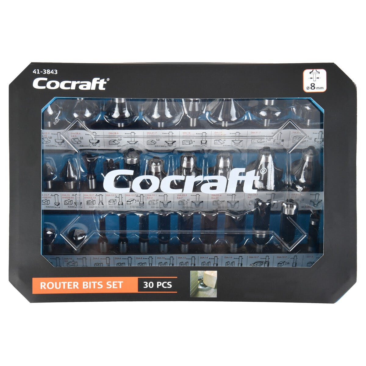 • Cocraft frässats – 29 fräsar och en mallfräs i olika profiler och dimensioner.