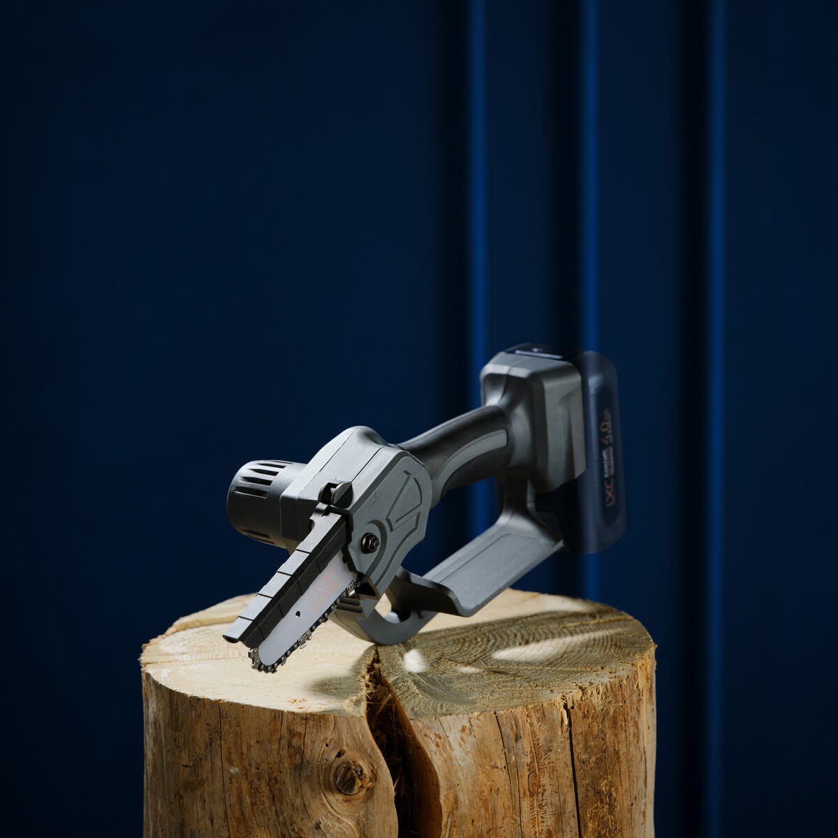 • Kompakti akkukäyttöinen ketjusaha, jossa 10 cm:n terälevy.