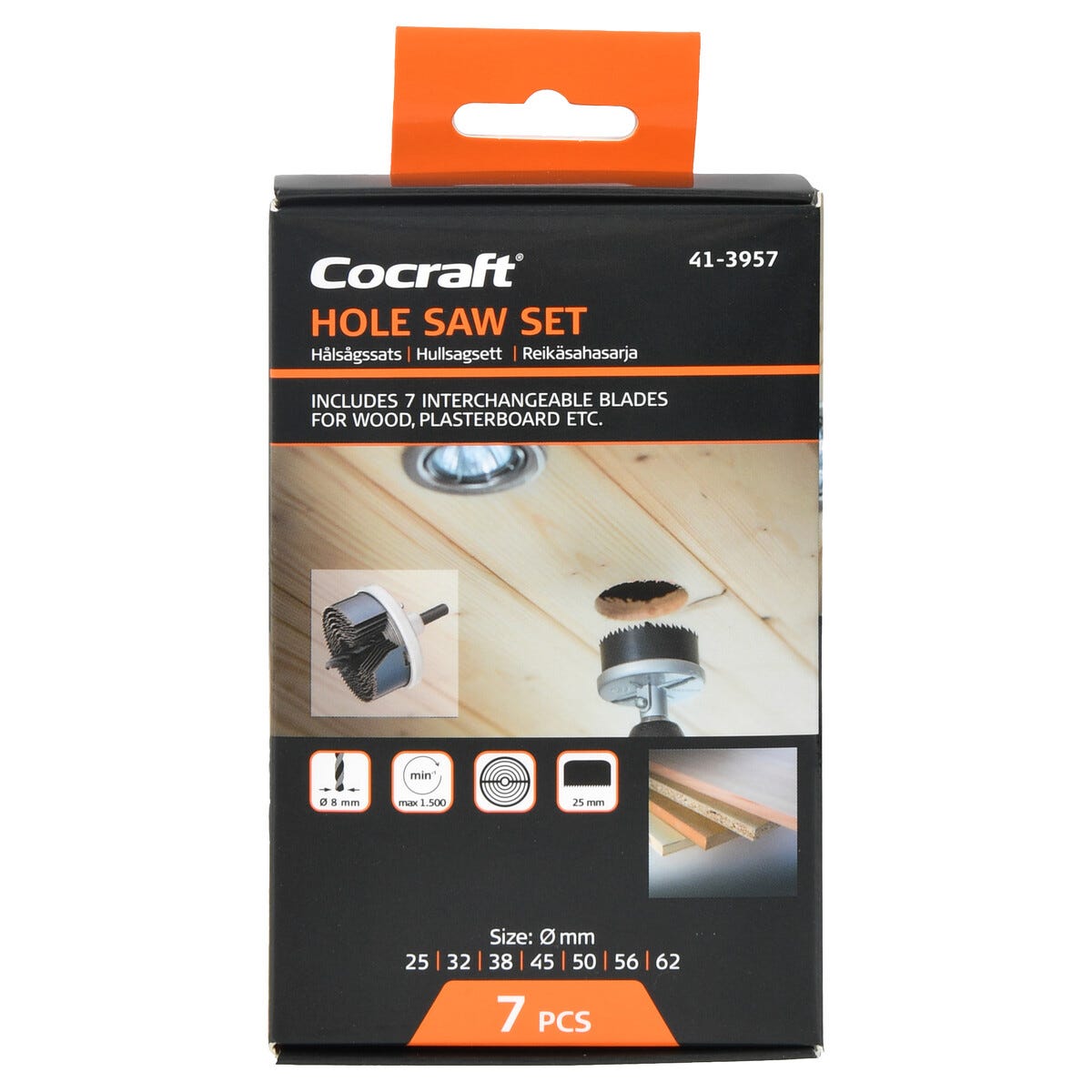 Cocraft hålsågssats 25–62 mm, trä och gips, 7 delar