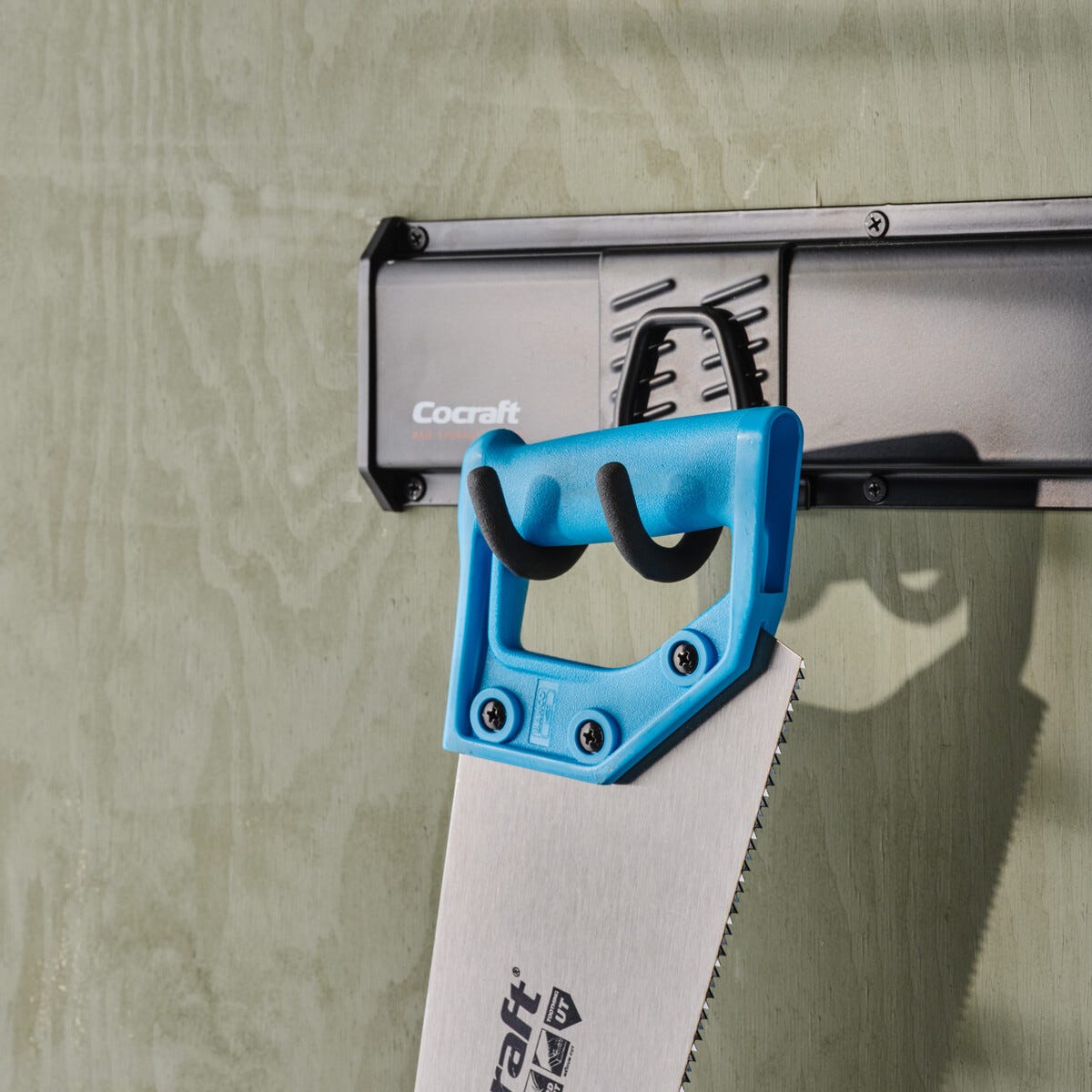 • Osa Cocraft Rail Storage System -säilytysjärjestelmää – sisätilojen seinäsäilytys.