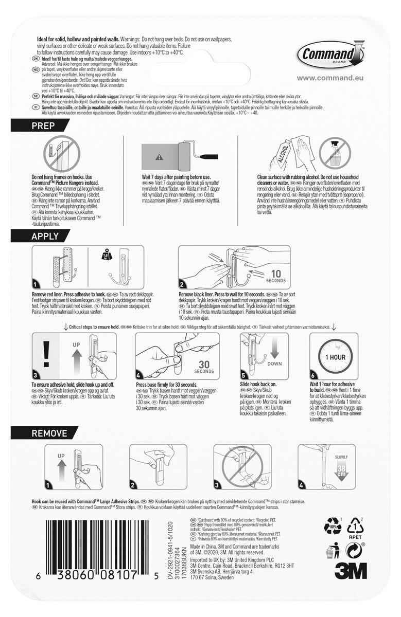• Command Large -kaksoiskoukku – pysyy tukevasti kiinni eikä vahingoita kiinnityspintaa.