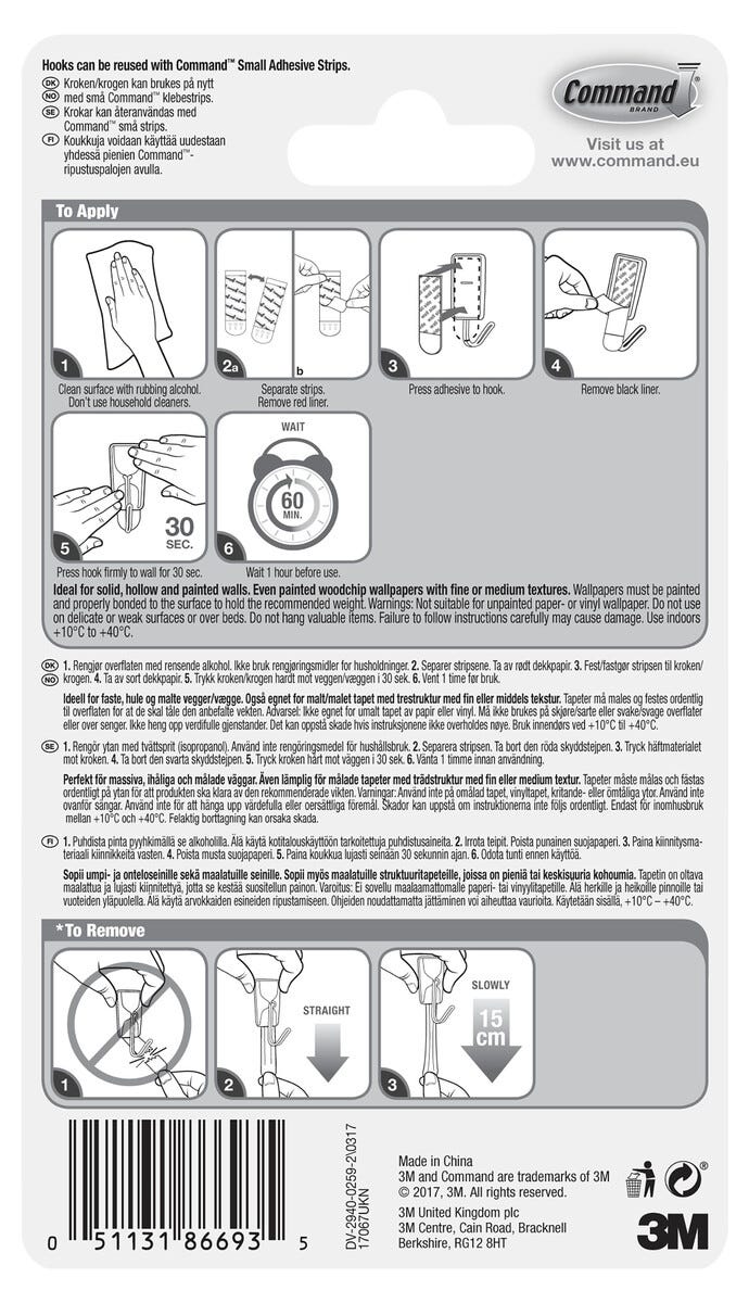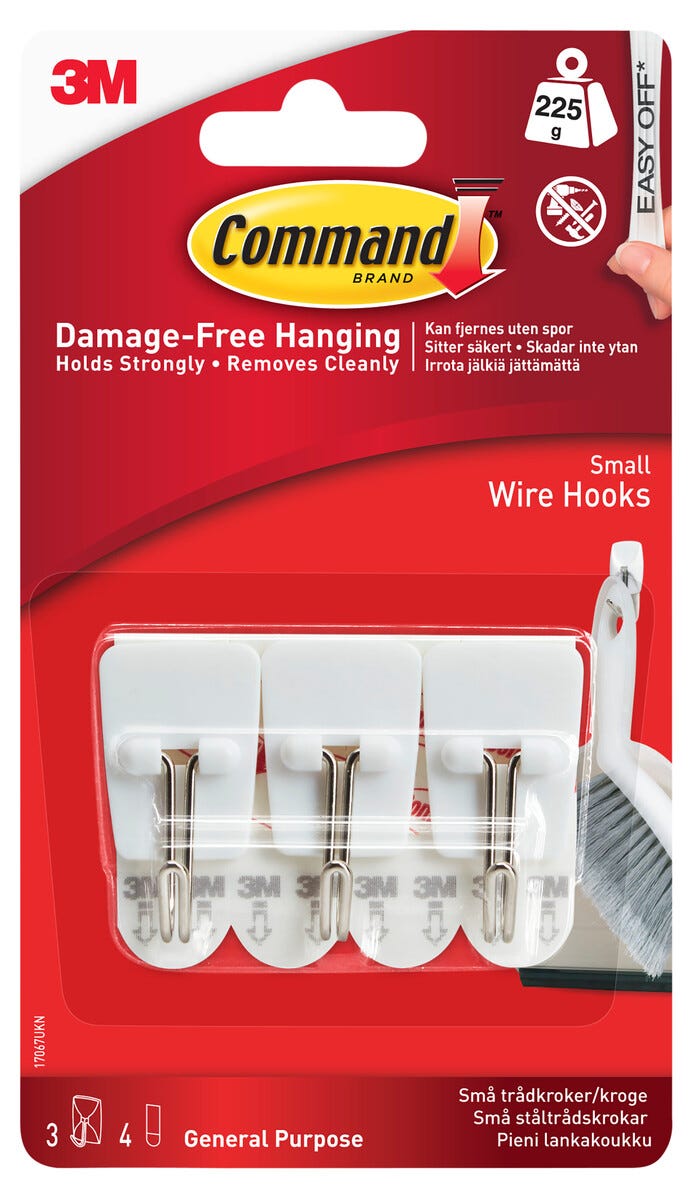 • Command Small -metallilankakoukut – pysyvät tukevasti kiinni eivätkä vahingoita kiinnityspintaa.