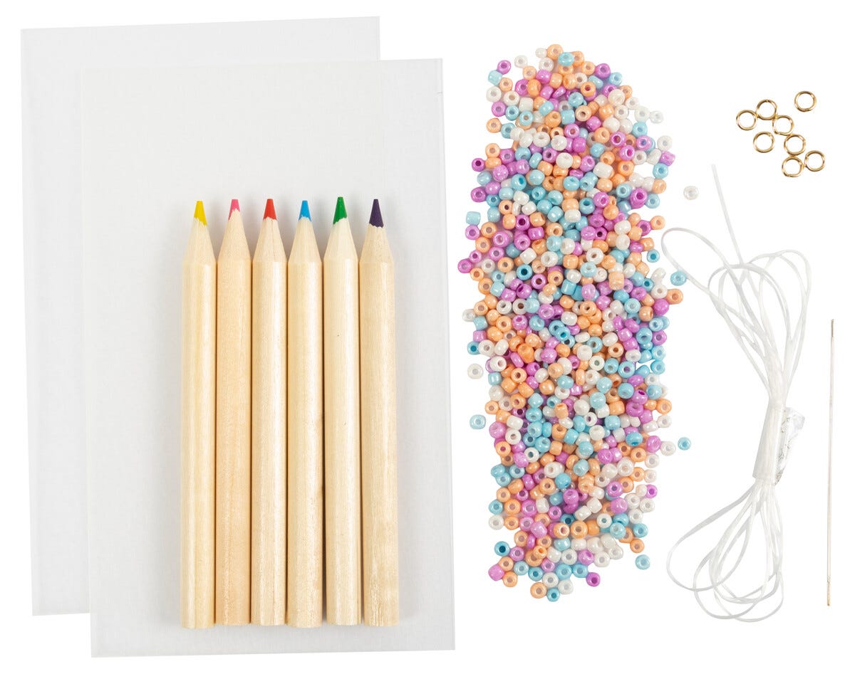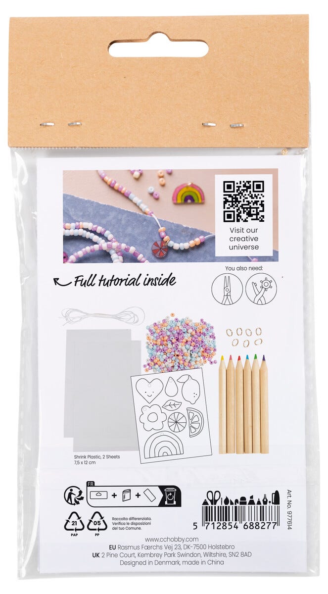 • Krympplastark, färgpennor, mallar, O-ringar, rocaillepärlor och pärlnål ingår.