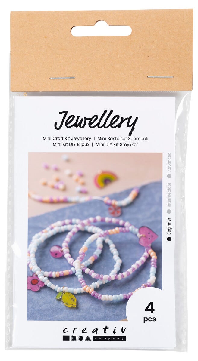 • Skapa egna smycken – kit för 4 armband med pärlor och personliga berlocker.