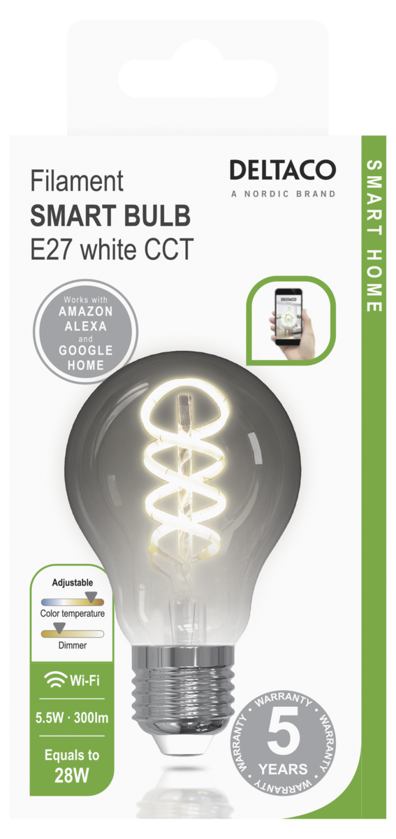 Deltaco Smart Home WiFi Himmennettävä LED-filamentti E27 5,5 W