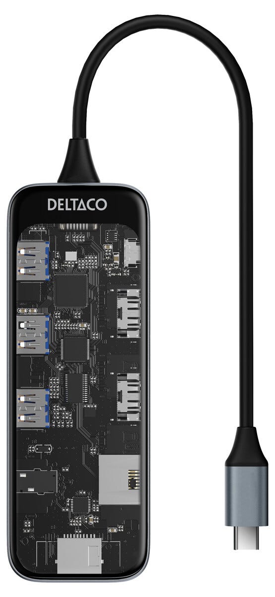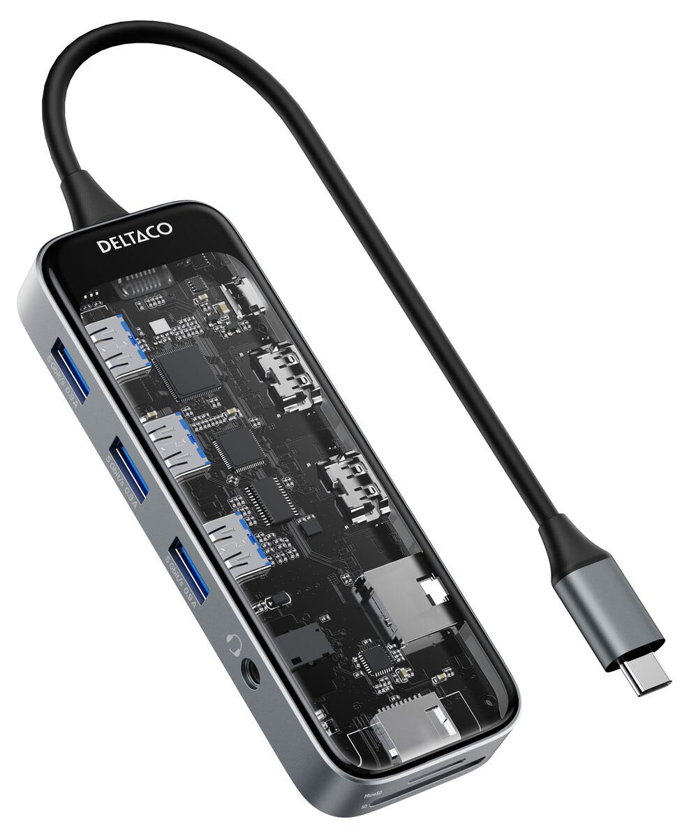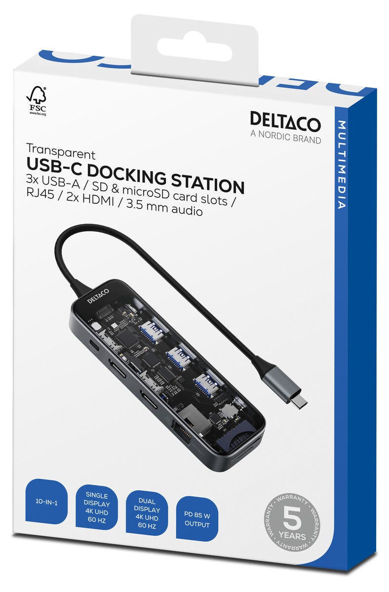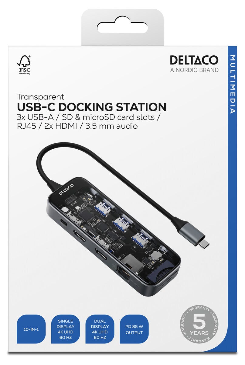 Deltaco USB-C-hubi, 10 porttia, läpinäkyvä