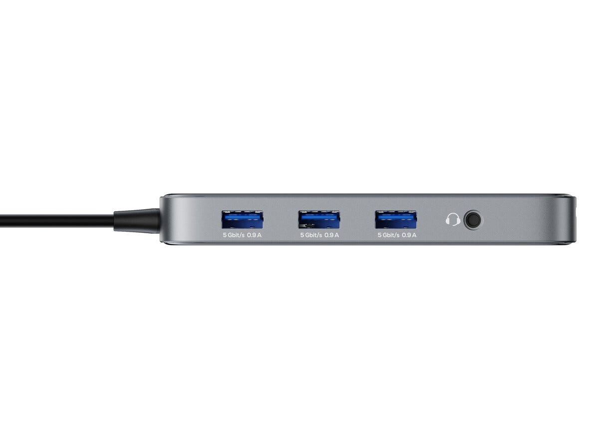 • Läpinäkyvä USB-C-hubi, joka tukee enintään kahta 4K UHD -näyttöä 60 Hz:n taajuudella.