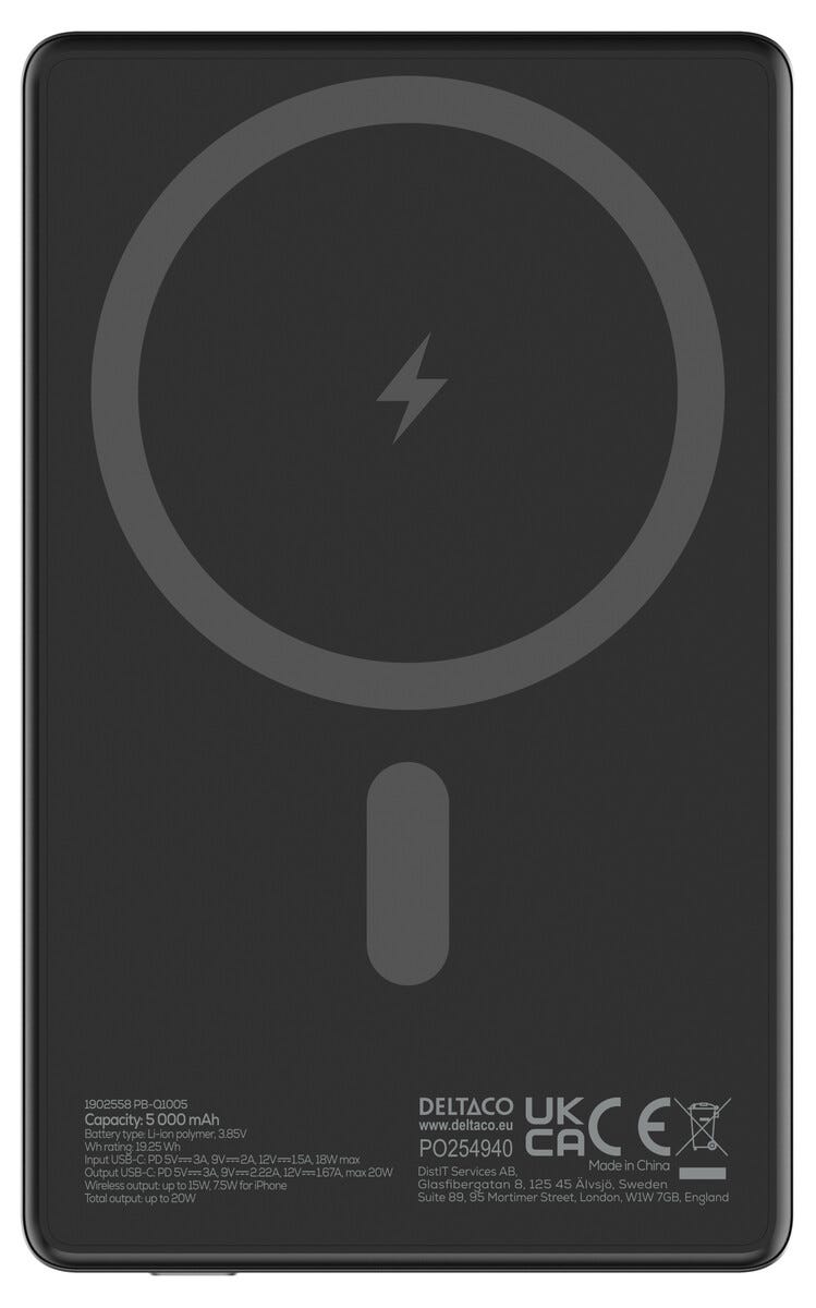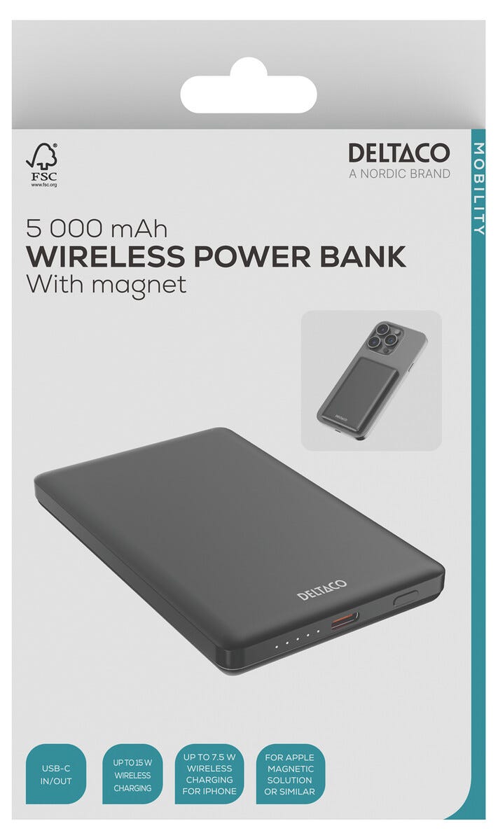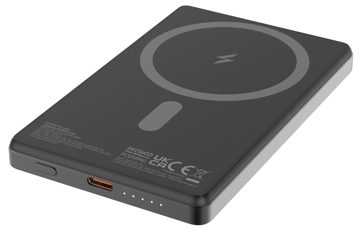 Deltaco trådlös powerbank med magnet, 5 000 mAh, 20 W