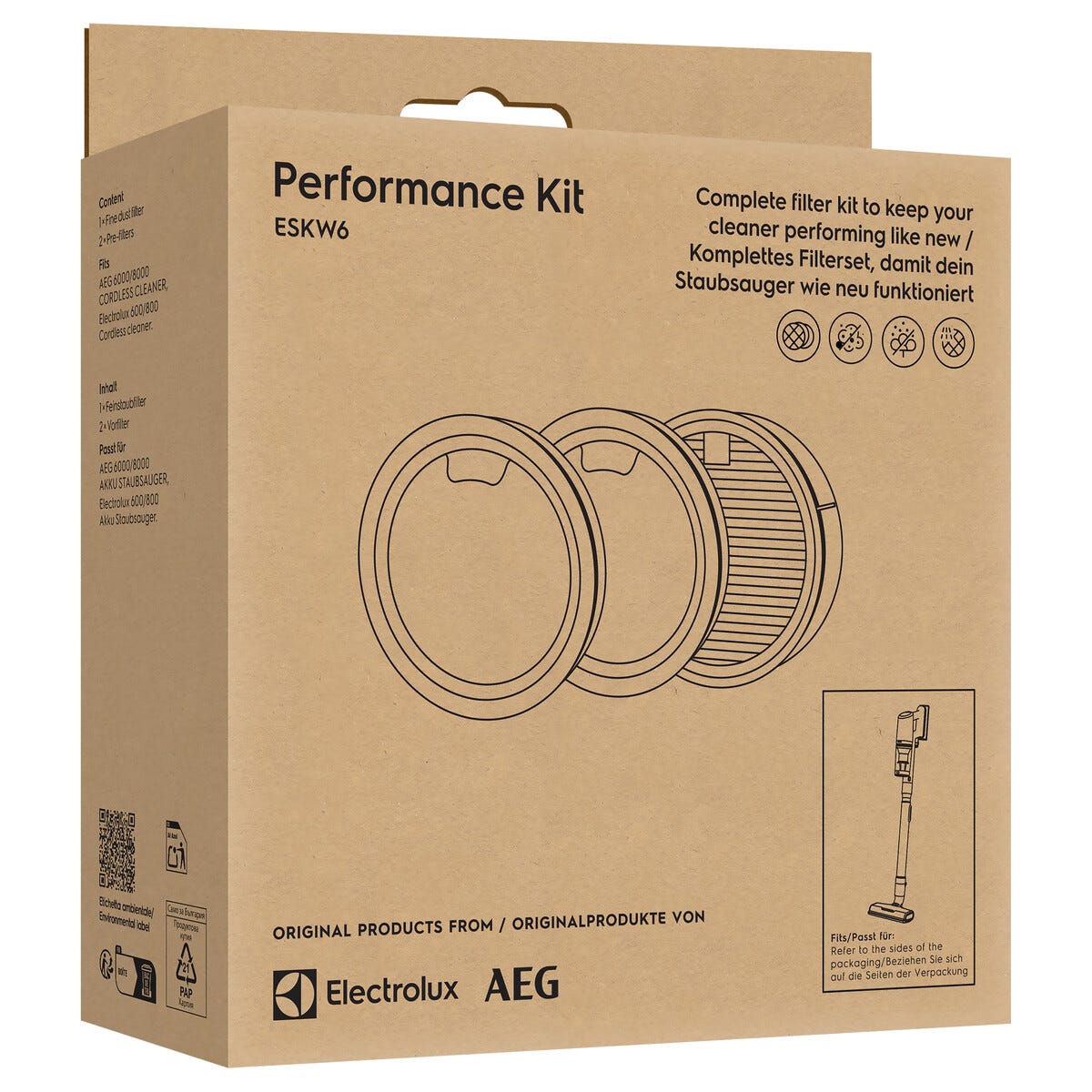 • Performance Kit ESKW6 sisältää 2 esisuodatinta ja 1 pölysuodattimen.
