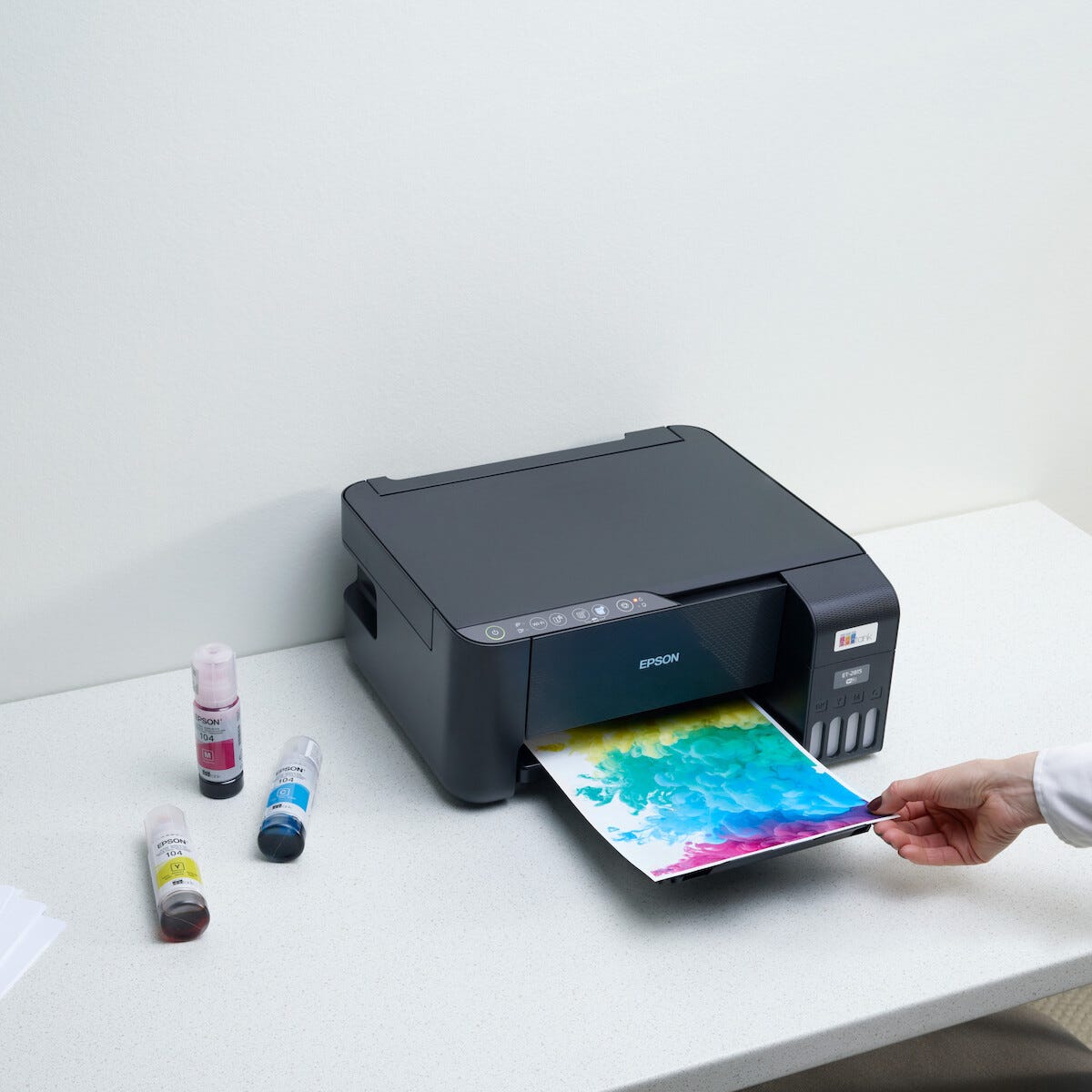 • Epson EcoTank 104 -täyttömuste kätevässä säiliössä.