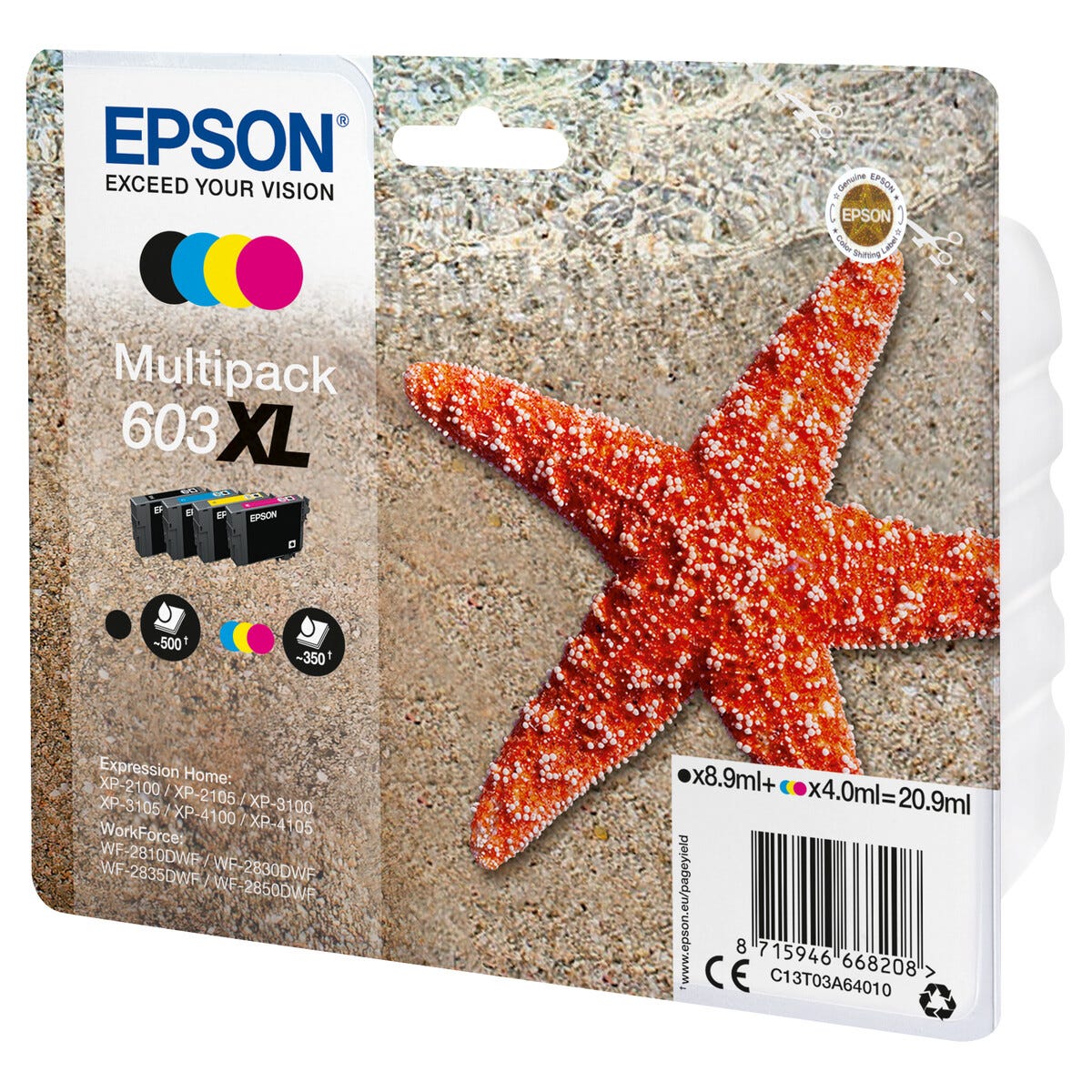 • Epson 603 -alkuperäismuste XL-kapasiteetilla – 4 kpl:n pakkaus mustaa ja värillistä mustetta.
